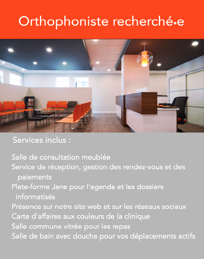 Nous sommes actuellement à la recherche d'un•e orthophoniste supplémentaire pour répondre à la demande grandissante pour ce service.